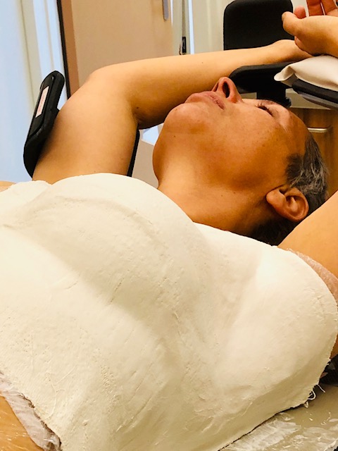 De bestraling is gisteren weer begonnen. Eerlijk gezegd spannend en niet zonder risico’s, want na 4 dagen is de wond verre van hersteld. Ik heb wel besloten dat dit het is. Dit implantaat blijft rustig zitten. Vochtophopingen doen we niet meer aan en al helemaal niet aan ontstekingen. Nog 11 keer bestralen en dan rust in de tent, please!