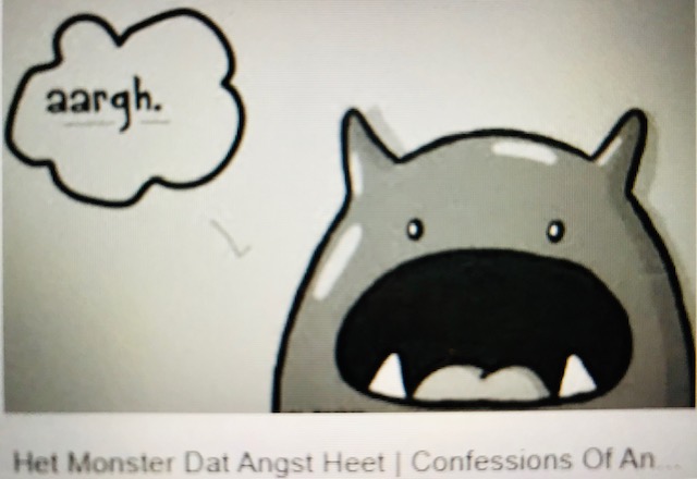Zo’n twee weken geleden sloeg de angst bij me in als een bom. Het leek haast uit het niets. Ik voelde een paar dingen in m’n lichaam, niet heel raar. Opeens kon ik niet anders dan me verschrikkelijk zorgen maken. Alsof een soort monster bezit had genomen van mijn gedachten. Ongelooflijk wat een ‘mind fuck’. Natuurlijk ben ik de afgelopen 11 maanden vaker bang geweest. Zeker aan het begin van het traject, heb ik veel angsten gekend. Toch was dit een nieuwe, nare K ervaring. Ik zat extreem in m’n hoofd, de negatieve gedachten maalden maar rond. Alsof ik erin verstikt raakte. Soms lukte het me met afleiding of praten er even van los te komen. Gelukkig ging het na een week een stuk beter, het monster werd kleiner. Meer rust, minder angst.
