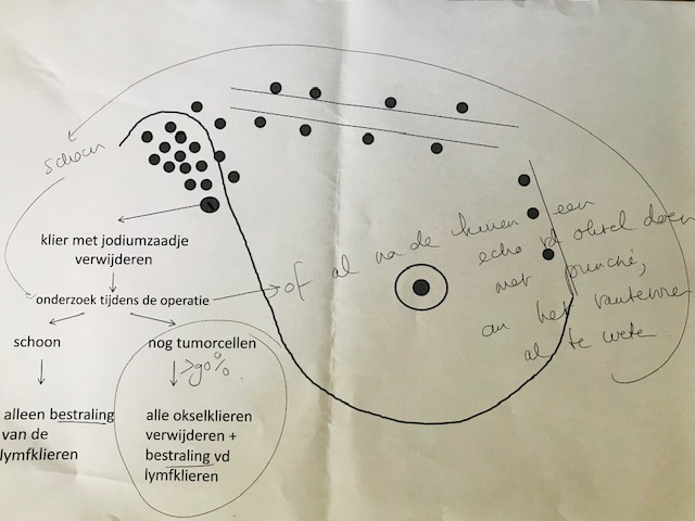 Een bovengemiddeld technisch verhaal, wat we zelf nog niet helemaal snappen. De tegenslag met bijbehorende emoties overheersen nu. Ik ben moe. Ook eerlijk gezegd nog van de operatie van vorige week. Het herstel gaat op zich goed. Beide wonden genezen goed. Wel nog last van mijn arm en oksel, erg gevoelig. Er is moest een zenuw doorgesneden worden om de klieren te verwijderen. Dat geeft rare tintelingen.